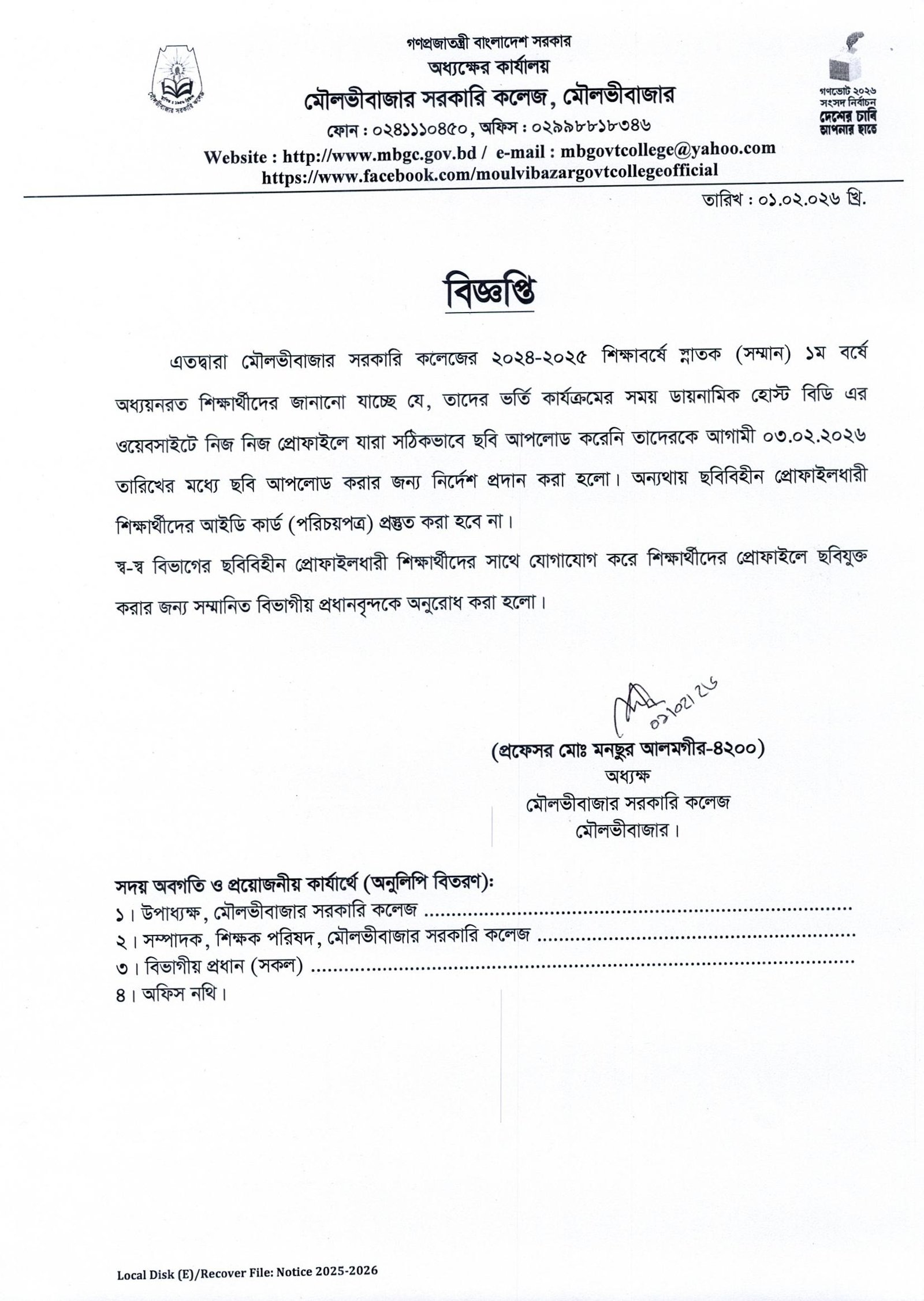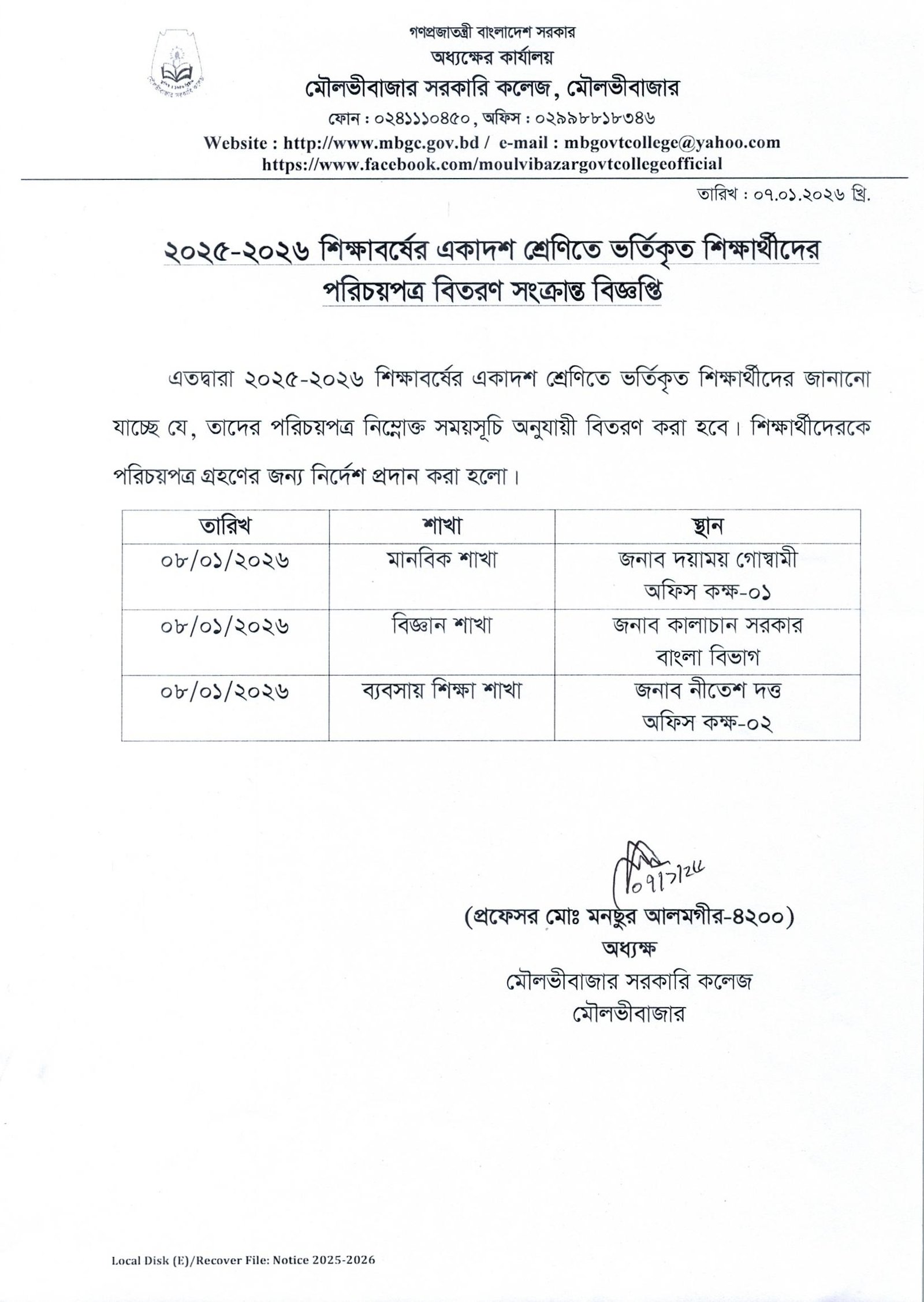 ২০২৫-২৬ শিক্ষাবর্ষে একাদশ শ্রেণীর শিক্ষার্থীদের পরিচয়পত্র বিতরণ সংক্রান্ত বিজ্ঞপ্তি