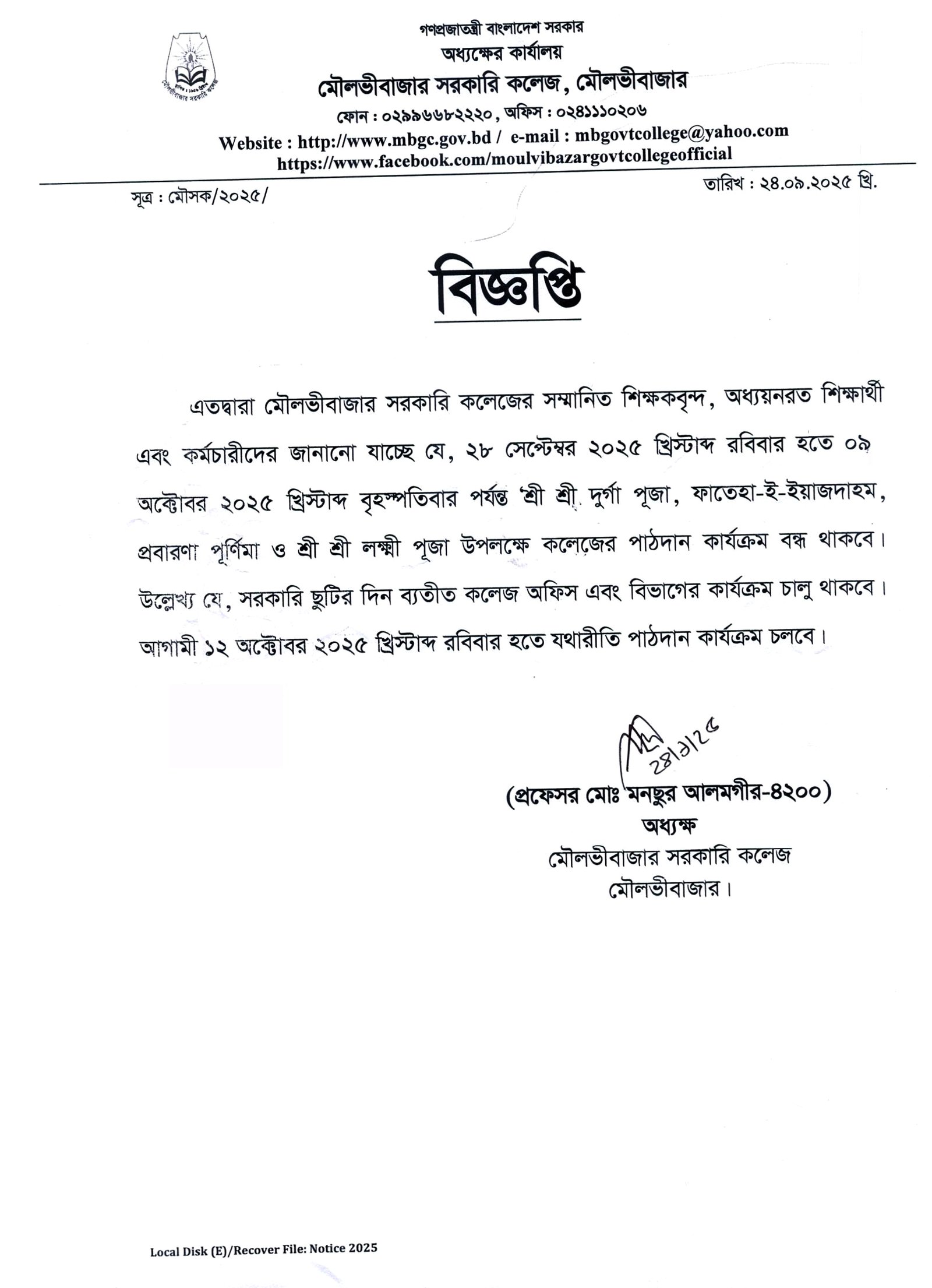 | Sl | Notice Date | Title | Notice Files |