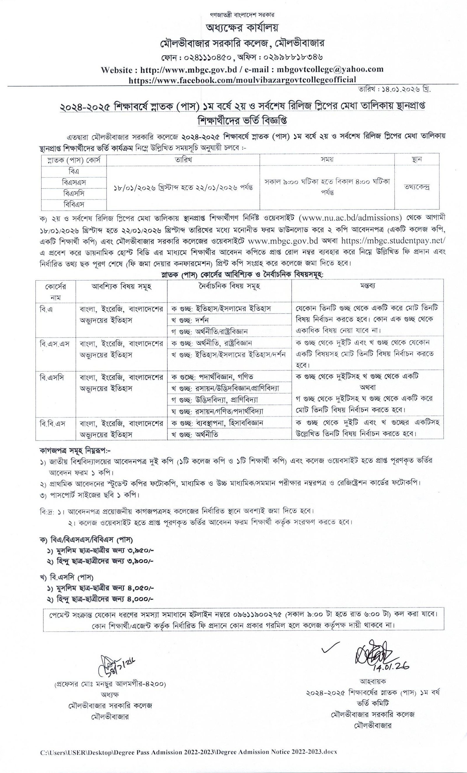 ২০২৪-২৫ শিক্ষাবর্ষে ১ম বর্ষ স্নাতক (পাস) ভর্তি কার্যক্রমে ২য় ও সর্বশেষ রিলিজ স্লিপে আবেদন সম্পর্কিত জরুরি বিজ্ঞপ্তি