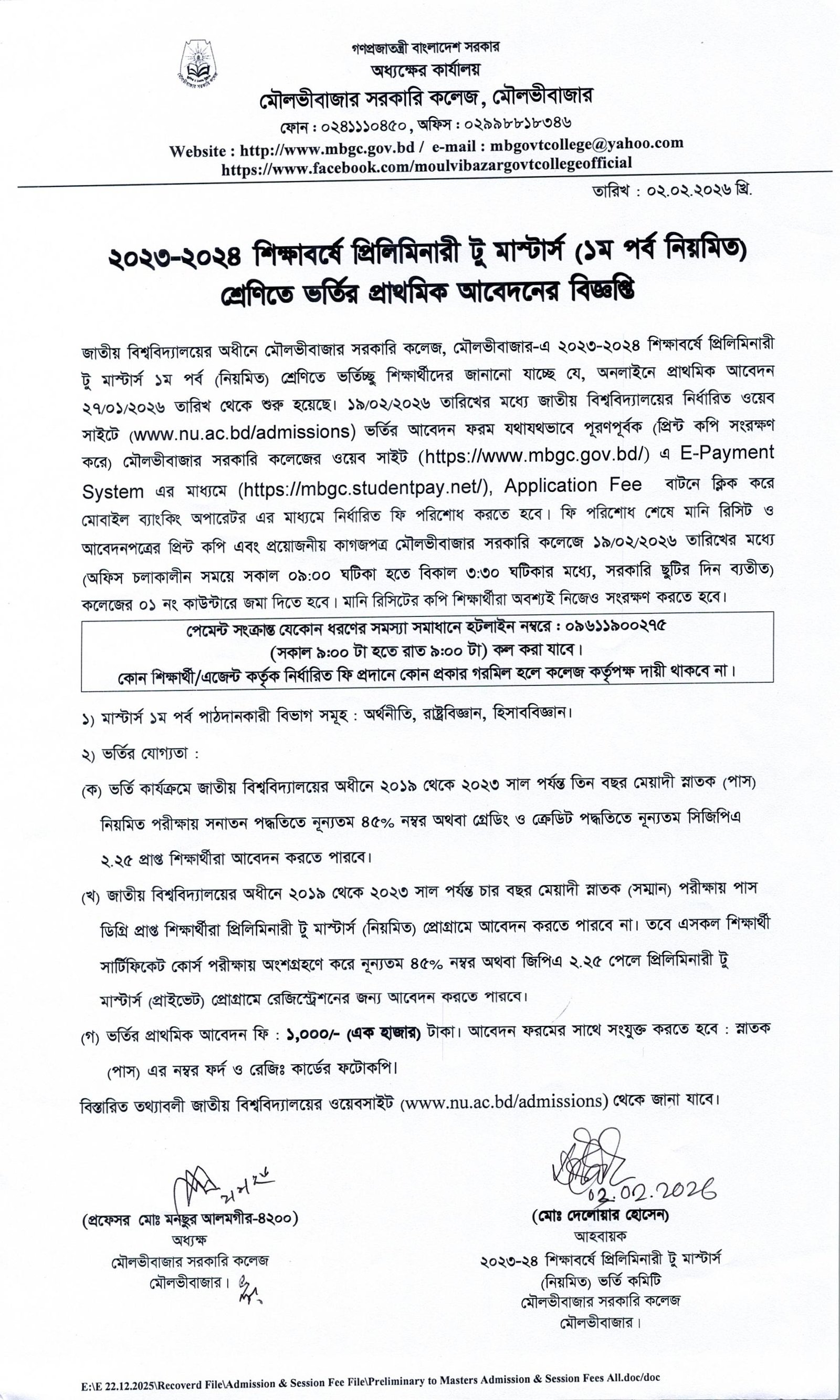 ২০২৩-২৪ শিক্ষাবর্ষে প্রিলিমিনারী টু মাস্টার্স ১ম পর্ব (নিয়মিত) শ্রেণিতে ভর্তির প্রাথমিক আবেদনের বিজ্ঞপ্তি