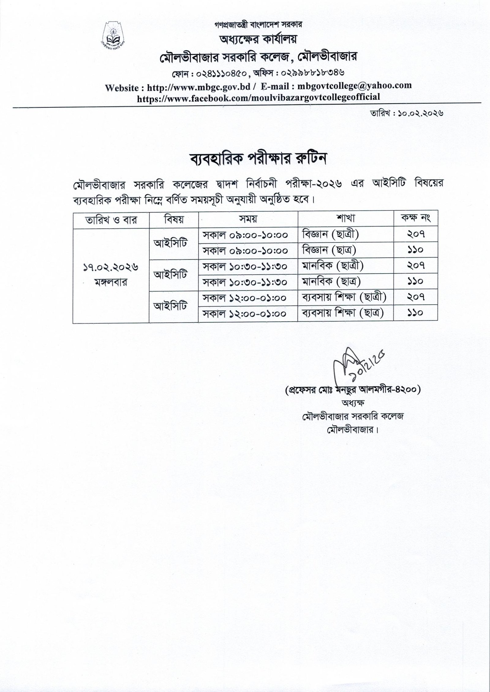 অধ্যক্ষ মৌলভীবাজার সরকারি কলেজ