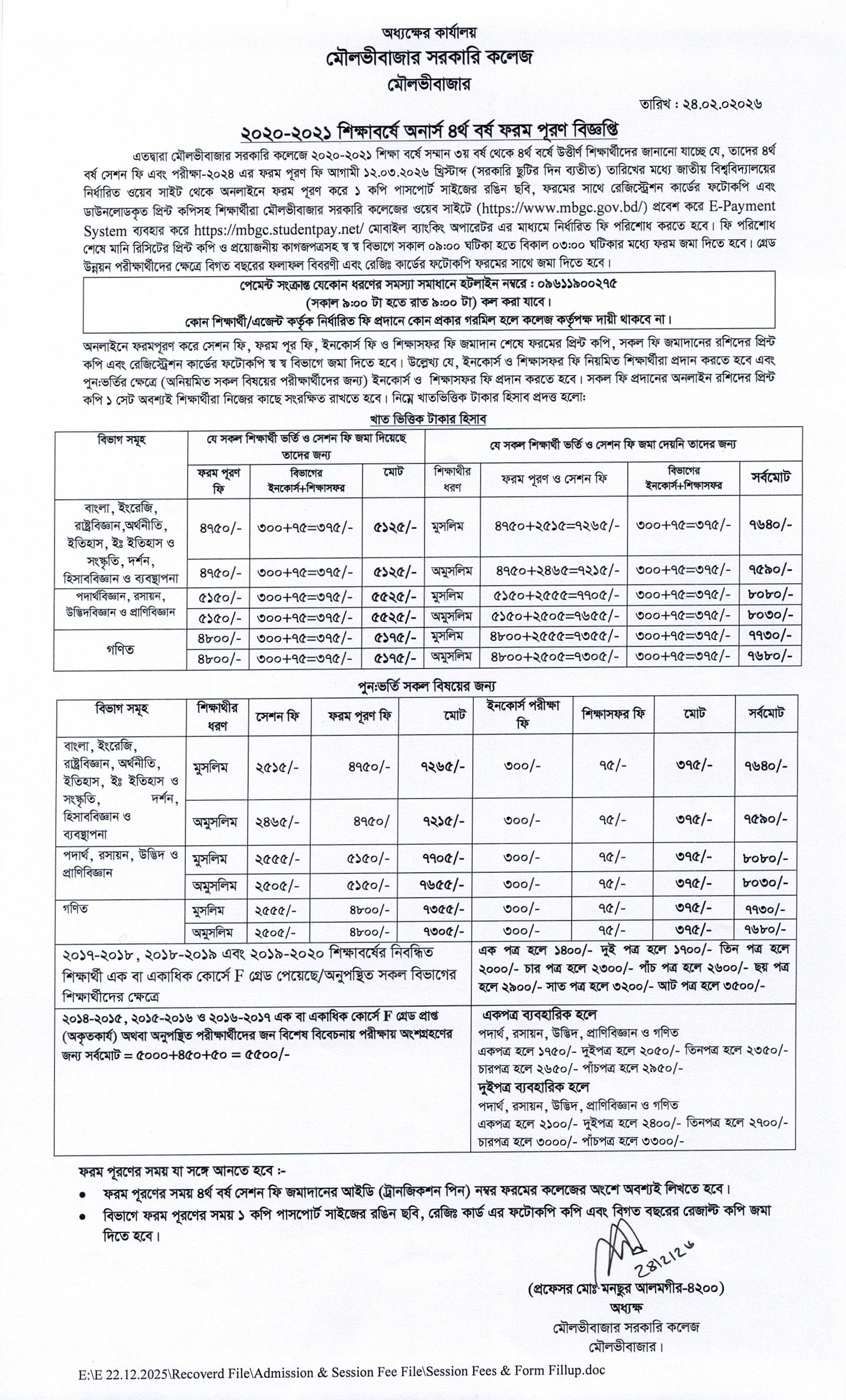 অনার্স ৪র্থ বর্ষ পরীক্ষা ২০২৪ এর ফরম পূরণের বিজ্ঞপ্তি